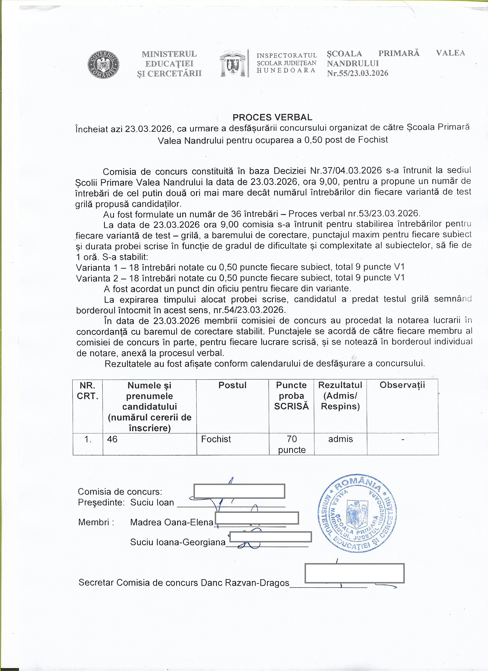 - Subiect: ANUNȚ CONCURS nedidactic FOCHIST