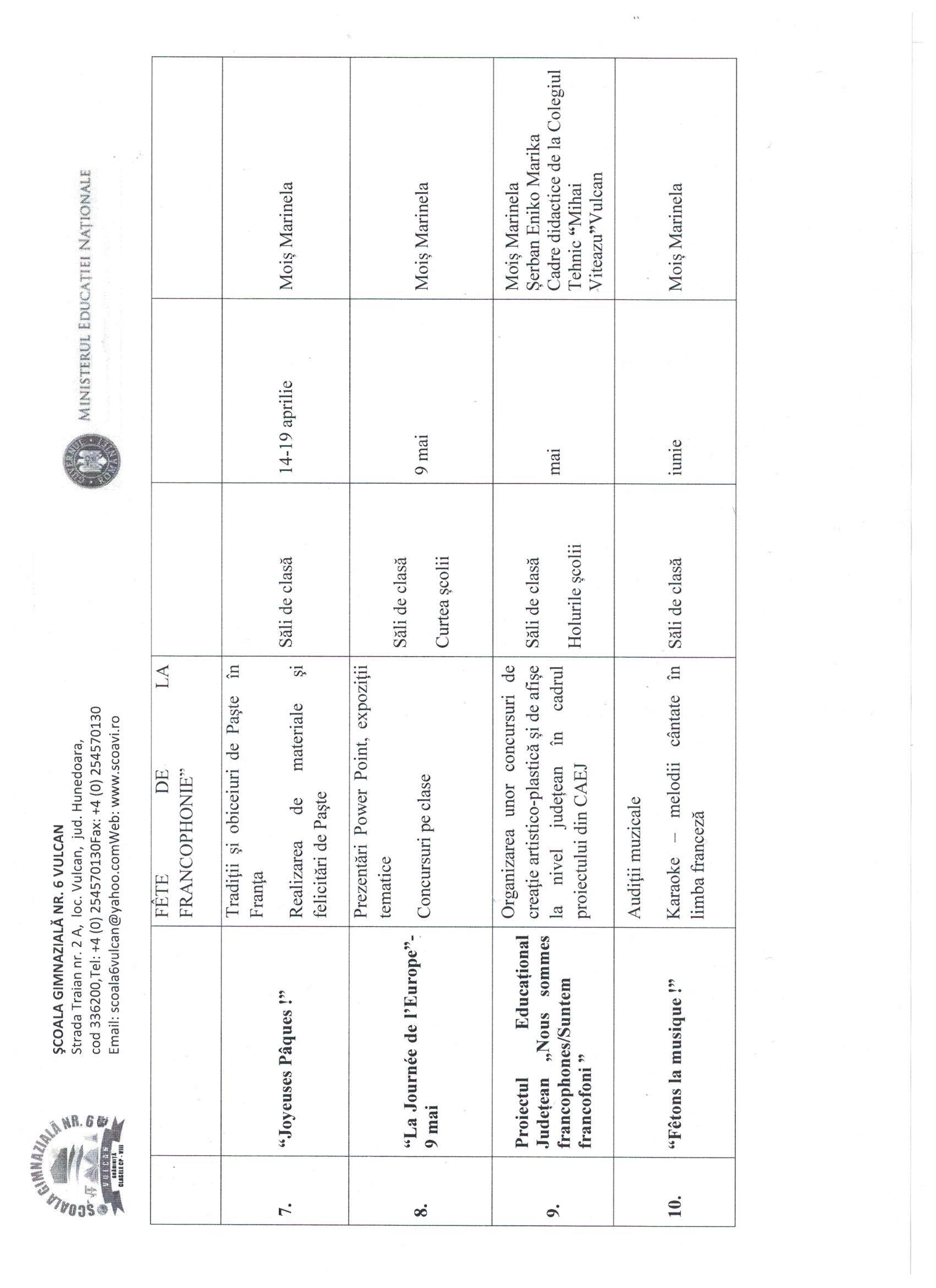 Re: Calendarul activităților_limba franceză