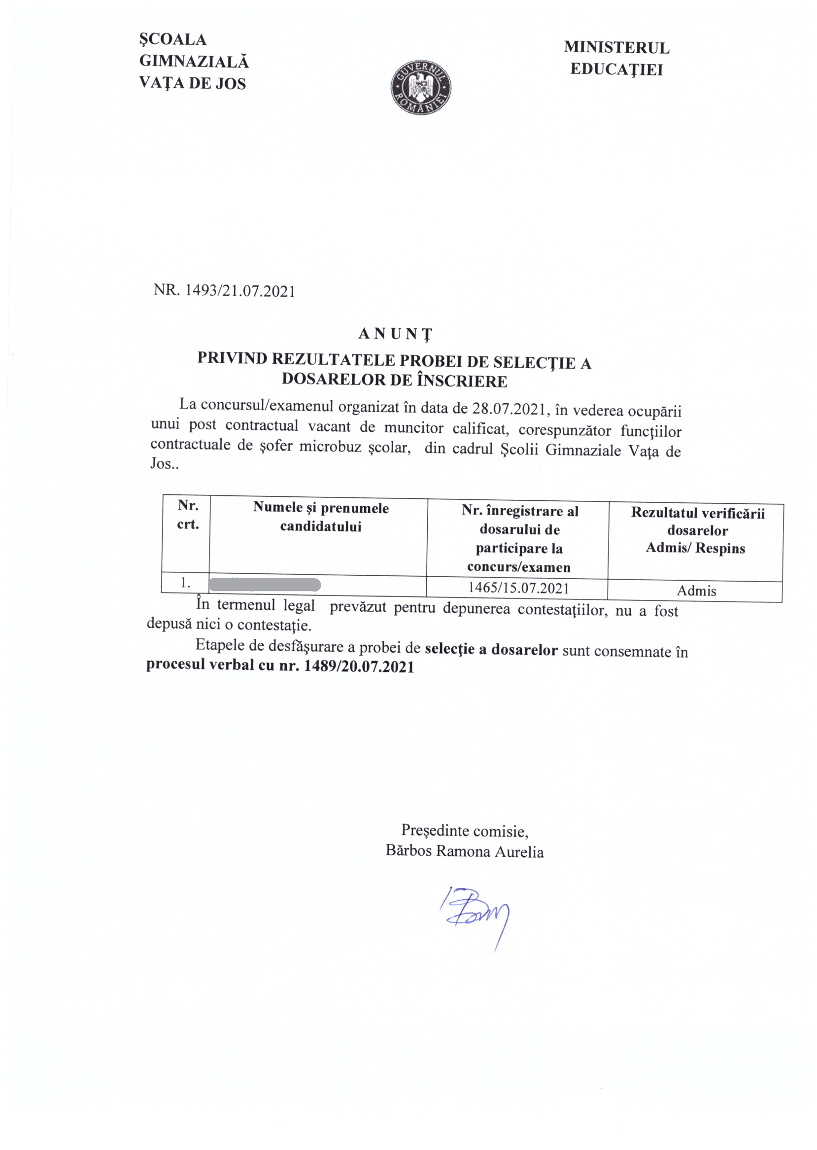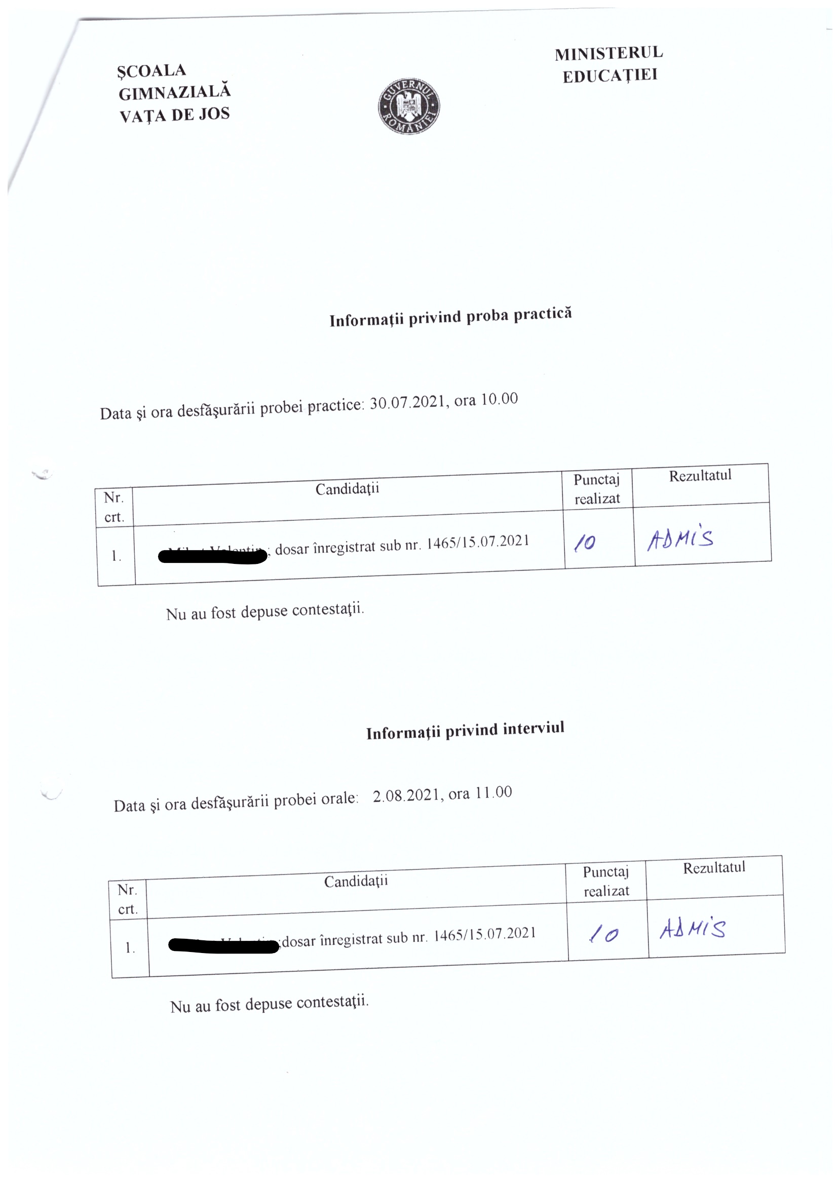 rezultat final concurs