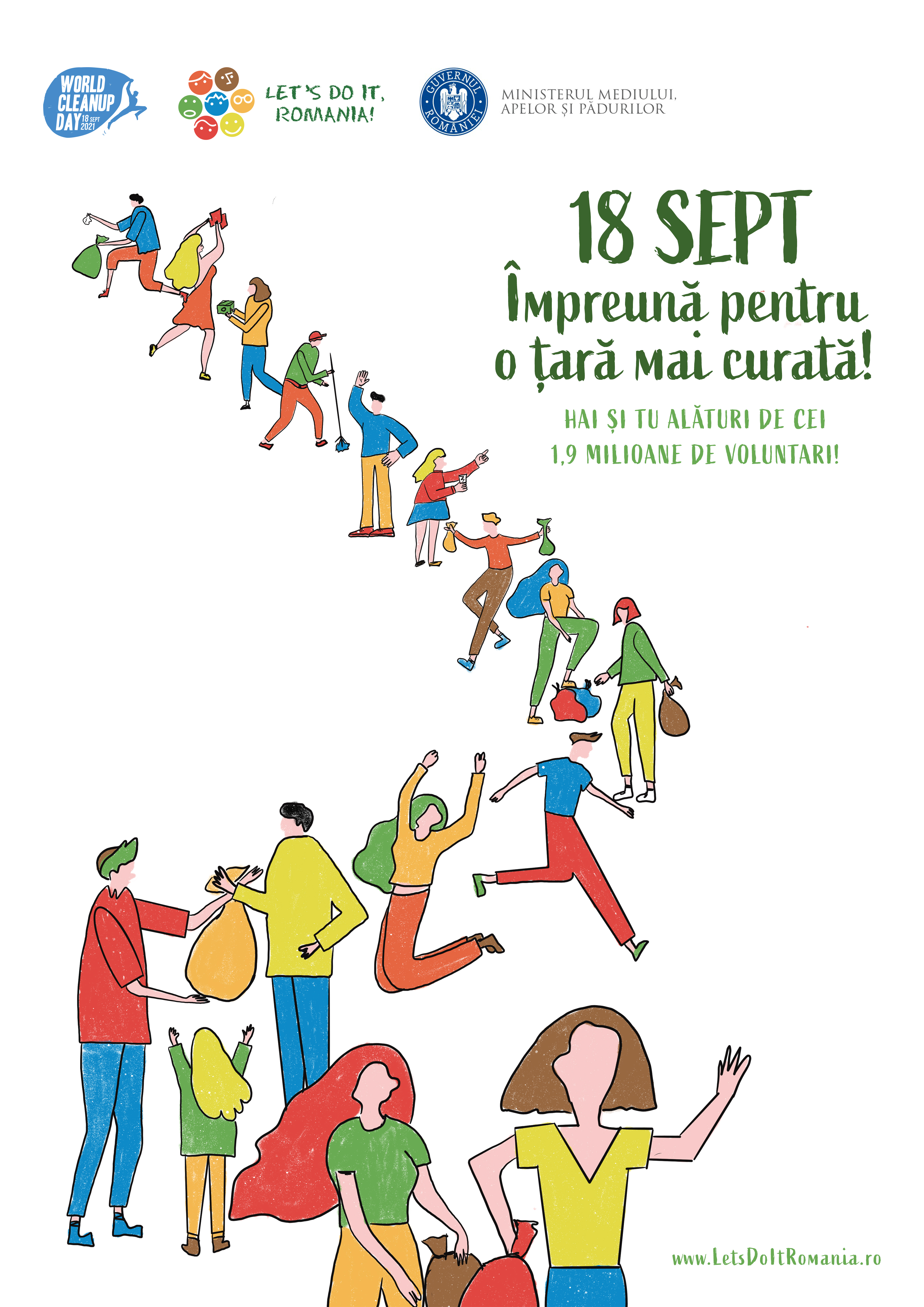 Anul acesta proiectul se va realiza si in context global in 175 de tari, sub numele „World Cleanup Day”. Astfel, pe 18 septembrie 2021, ne propunem sa mobilizam 5% din populatia planetei pentru a curata deseurile de pe toata suprafata Pamantului intr-o singura zi. In Romania, acest obiectiv se traduce prin mobilizarea a 1 milion de cetateni, participanti in cadrul proiectului.„