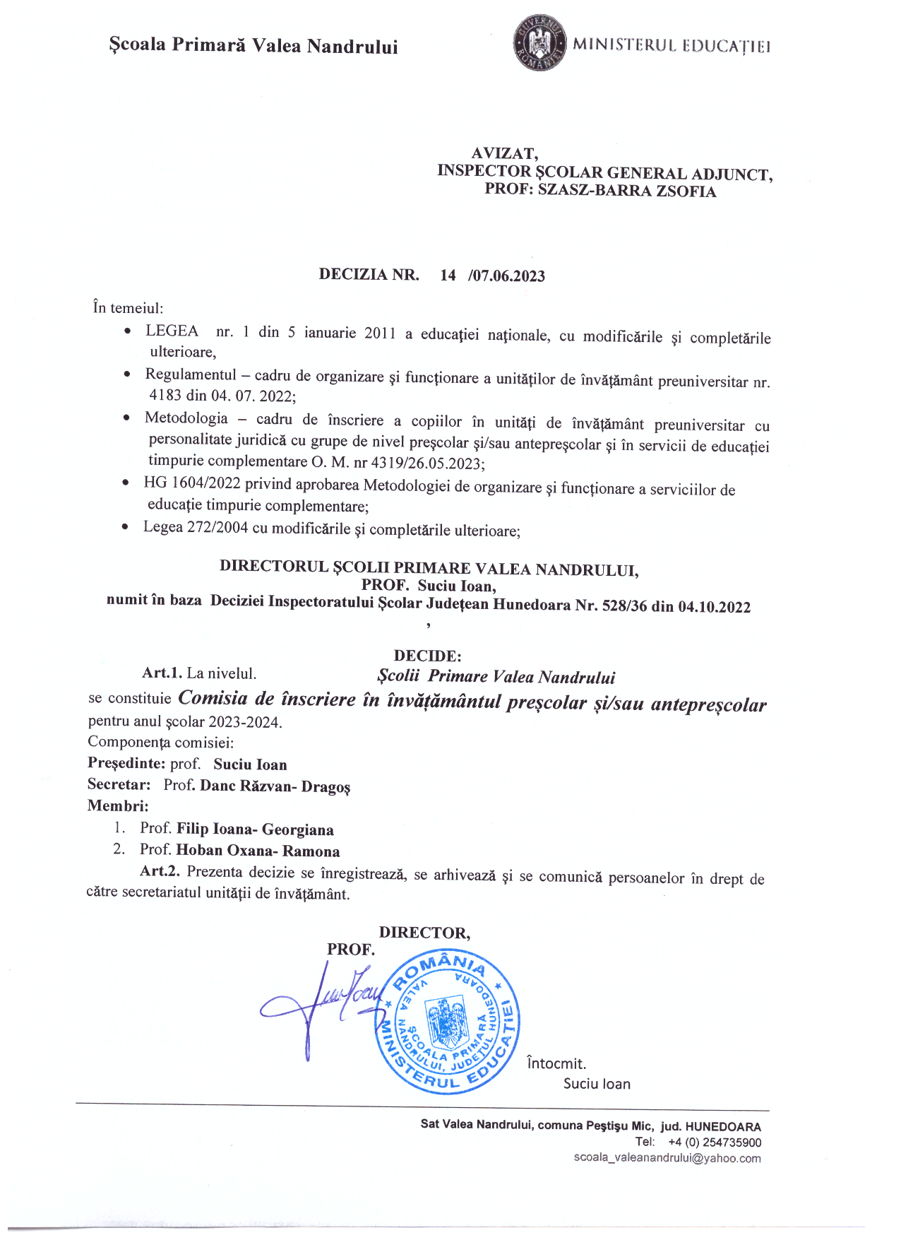 Decizie înscriere învățământ preșcolar -Scoala Primară Reea.pdf