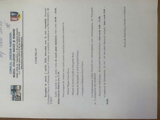 Aveți în atașament „programul de vară”, de vizitare a muzeului începând din 2 aprilie 2024, de marți până duminică în intervalul orar 10.00 - 18.00.