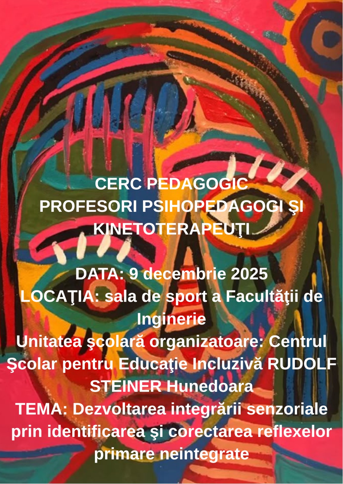În data de 09.12.2025, cu începere de la ora 9.30 va avea loc Cercul pedagogic al profesorilor psihopedagogi și al profesorilor kinetoterapeuți.