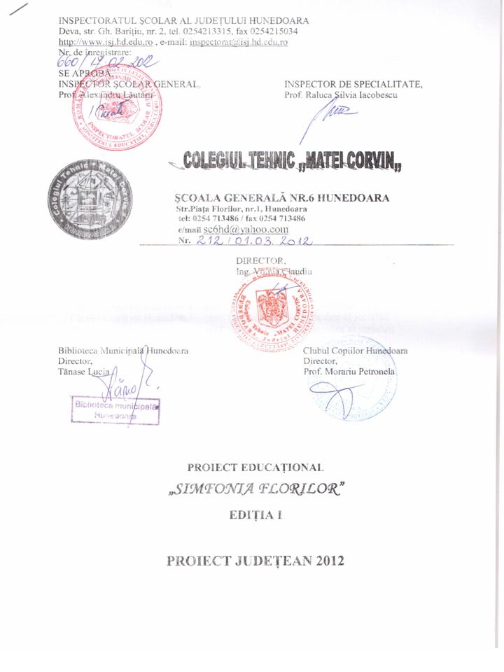 Vă invităm să participaţi la proiectul educaţional “Simfonia florilor”, ediţia I, organizat de Colegiul Tehnic “Matei Corvin” – Şcoala Generală Nr.6 Hunedoara.
