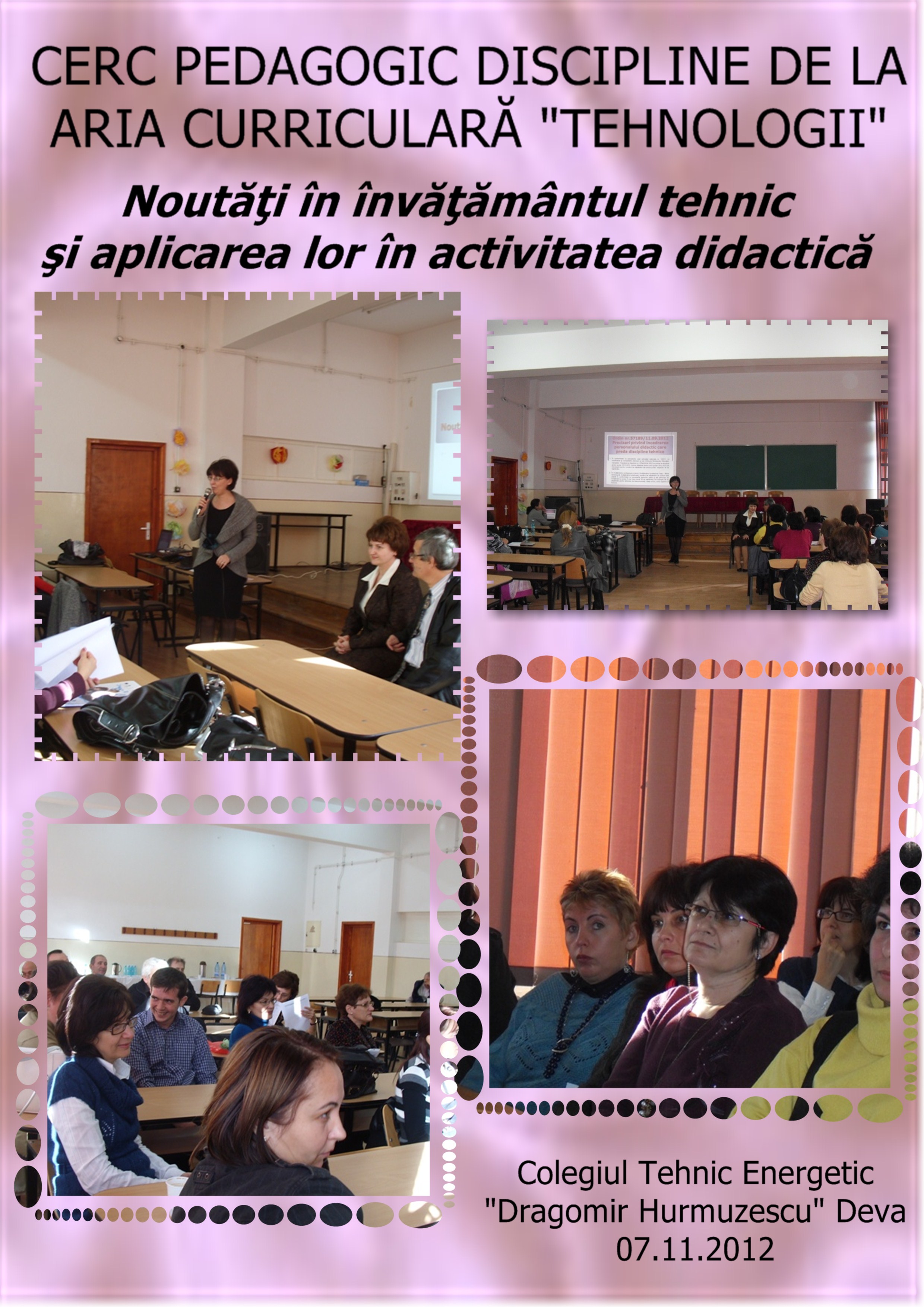 La Colegiul Tehnic Energetic „Dragomir Hurmuzescu”Deva s-a desfăşurat la 7 noiembrie 2012 cercul pedagogic cu tema „Noutăţi în învăţământul tehnic şi aplicarea lor în activitatea didactică”.