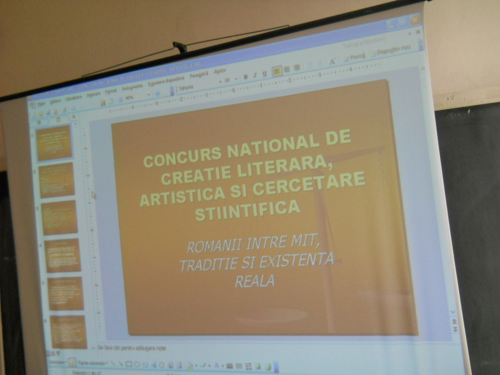 IN DATA DE 25 MARTIE 2013, S-A DESFASURAT SIMPOZIONUL SI CONCURSUL JUDETEAN CU TEMA : “ROMANII INTRE MIT, TRADITIE SI EXISTENTĂ REALĂ", EDITIA a II-a, ORGANIZAT DE SCOALA GIMNAZIALA,,MIRCEA SANTIMBREANU” BRAD. IN FISIERUL ALATURAT REDAM CATEVA ASPECTE DIN TIMPUL DESFASURARII ACESTEI ACTIVITATI.