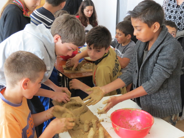 Pentru elevi expozitia este una interactiva. Picteaza si modeleaza dinozauri care vor ramane expusi alaturi de DINA si DINUTA.