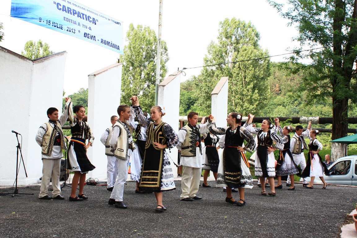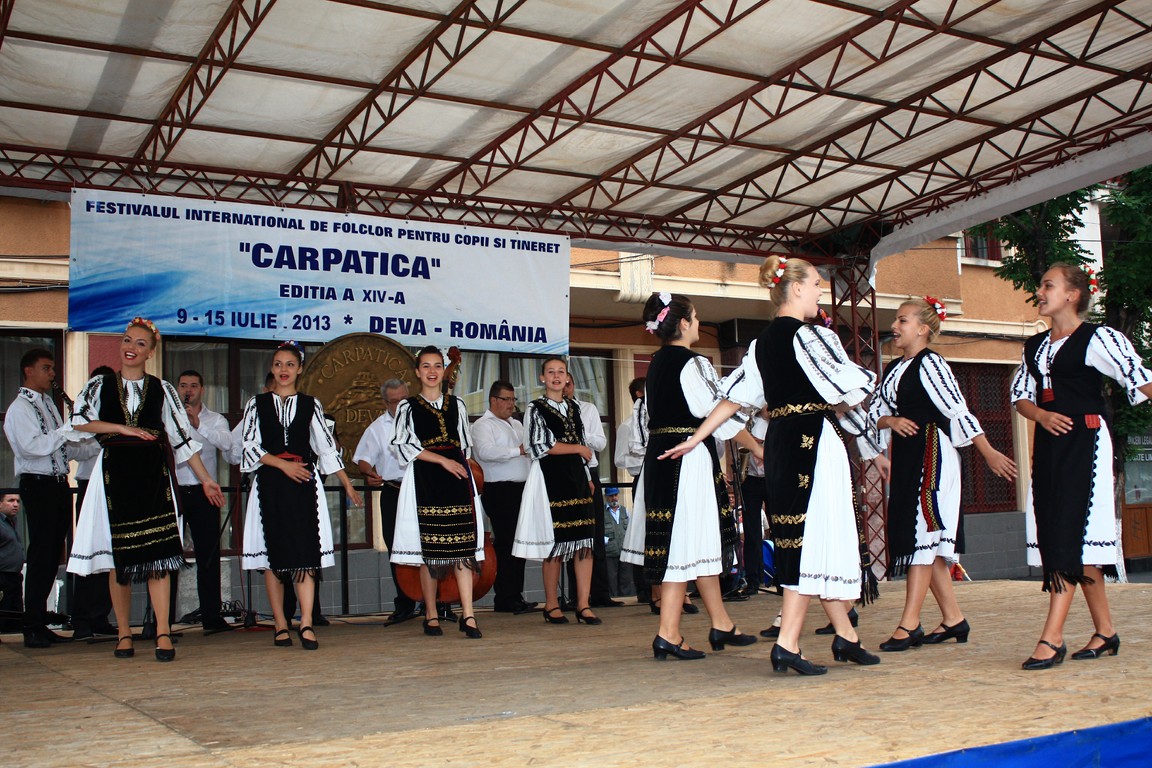 A XIV-a editie a Festivalului International de Folclor pentru Copii si Tineret CARPATICA, a debutat miercuri 10 iulie, orele 17, la Deva, cu o parada a portului, cantecului si dansului popular. 14 ansambluri folclorice din tara si din strainatate, i-au incantat pe deveni cu frumoasele lor costume traditionale, cu glasurile si dansurile pe care le-au prezentat intr-un spectacol de 3 ore in Piata Unirii. In deschirerea festivalului, pe scena au urcat reprezentantii ansamblurilor folclorice, iar pentru a spune BUN VENIT!, d-na Inspector Scolar General-adjunct Lavinia Ilina, d-l Primar al Municipiului Deva - Petru Marginean, D-l Primar al Comunei Certej - Petru Campean si initiatorul si coordonatorul festivalului, d-l profesor Dumitru Lasconi - directorul Palatului Copiilor din Deva.
