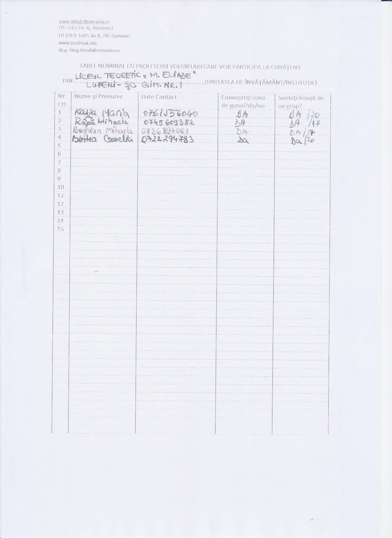 Atasam tabelele cu elevii si cadrele didactice participante la Campania "Let's Do It, Romania!"