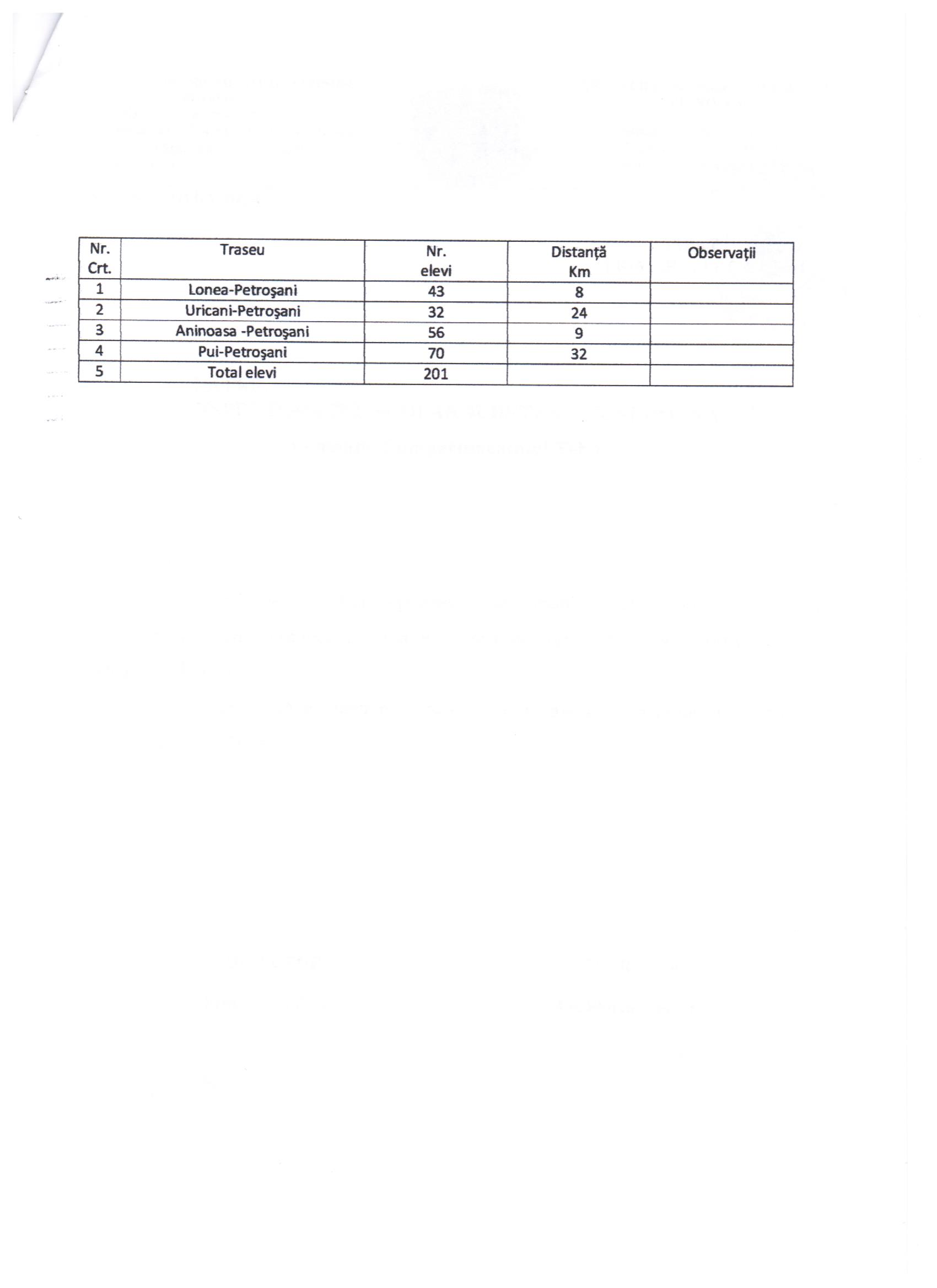 În cadrul solicitarii se vor mentiona traseele care vor fi parcurse atat de microbuzele existente (daca este cazul) cât si de cele solicitate, kilometri parcursi pe fiecare traseu cât si numarul de elevi transportaţi pe fiecare traseu.