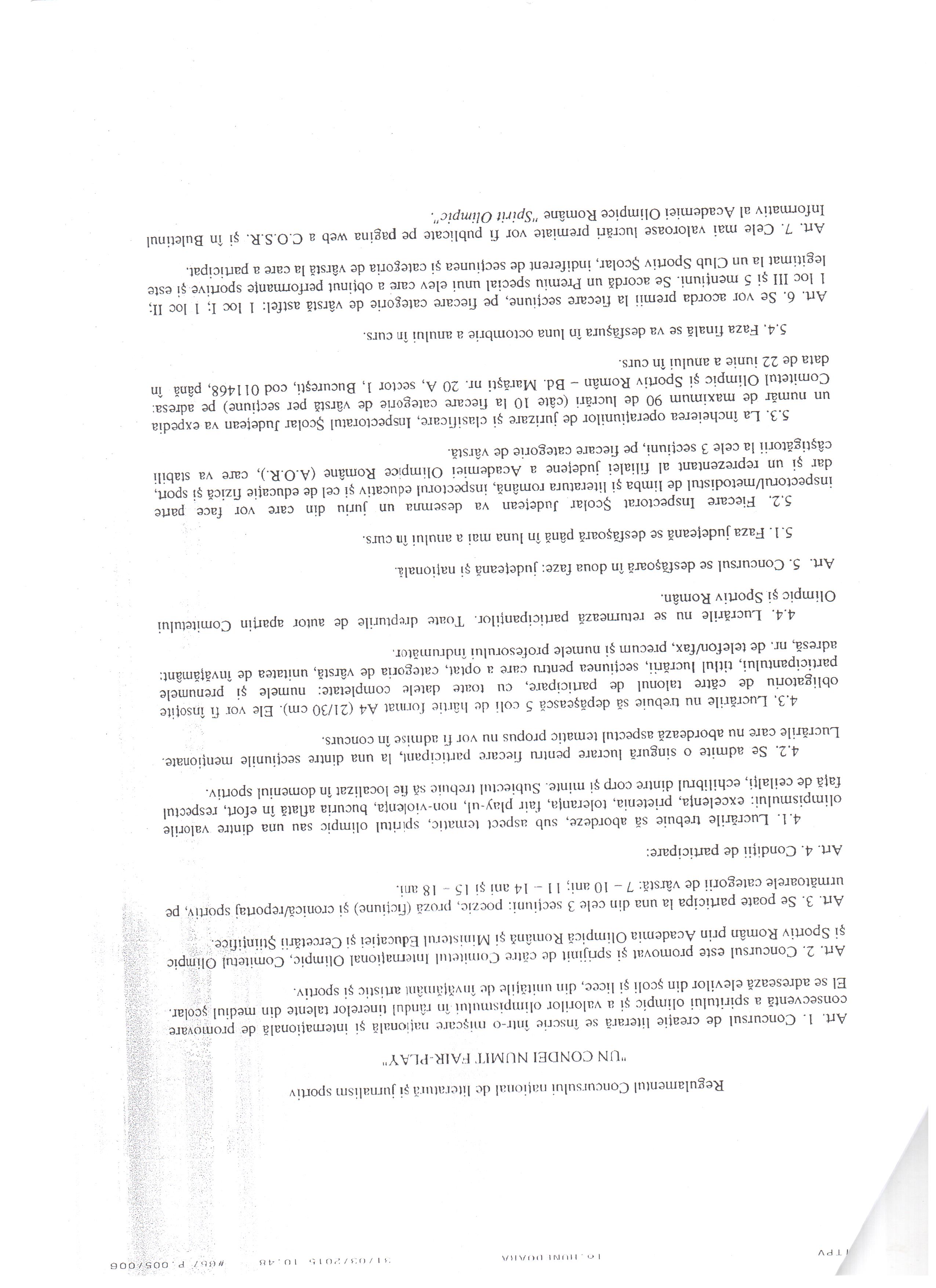 Adresa este scanată fără antet, dar are semnăturile oficiale, regulamentul și talonul de participare.