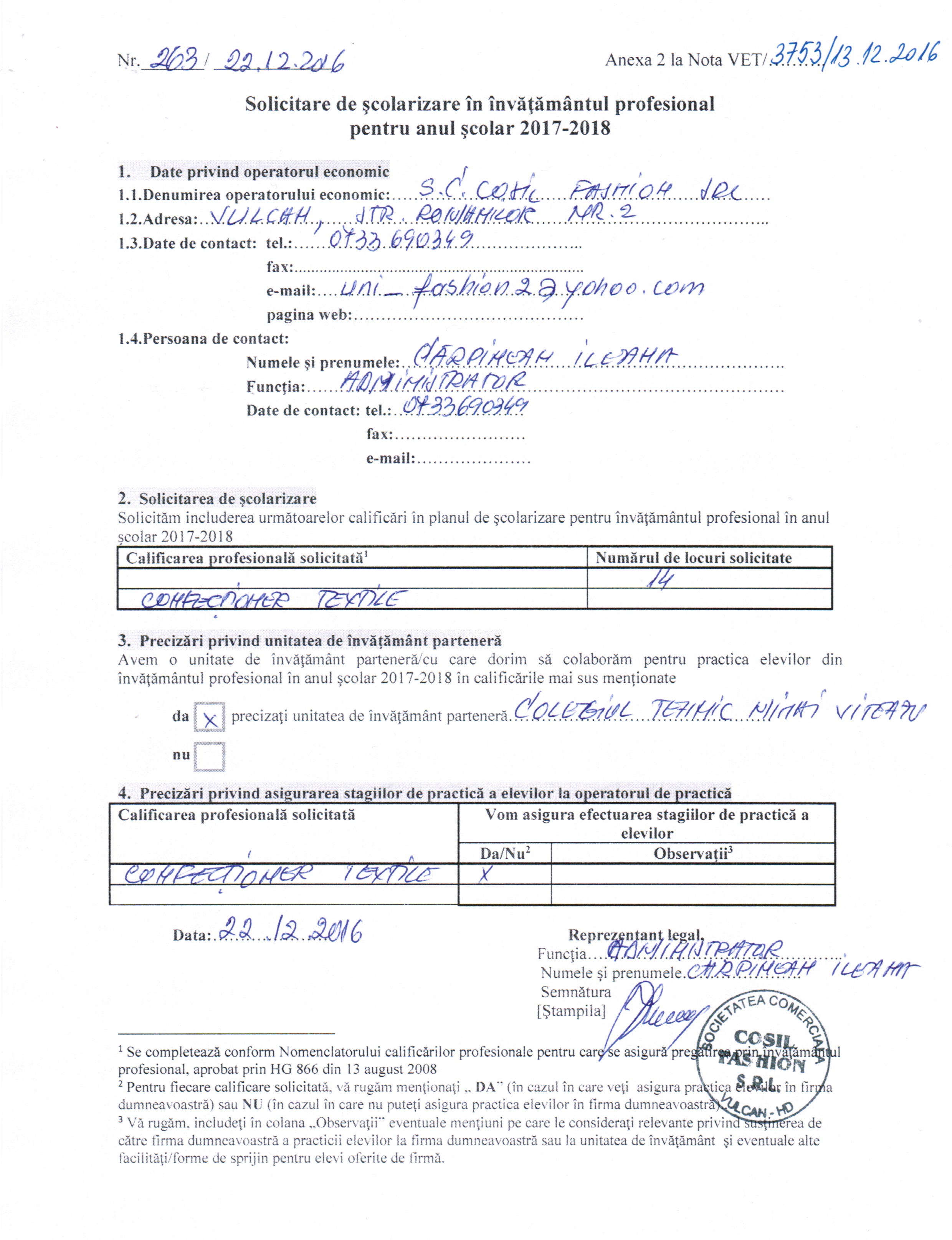 Re: Procedura solicitare operatori ec_cls învățământ profesional