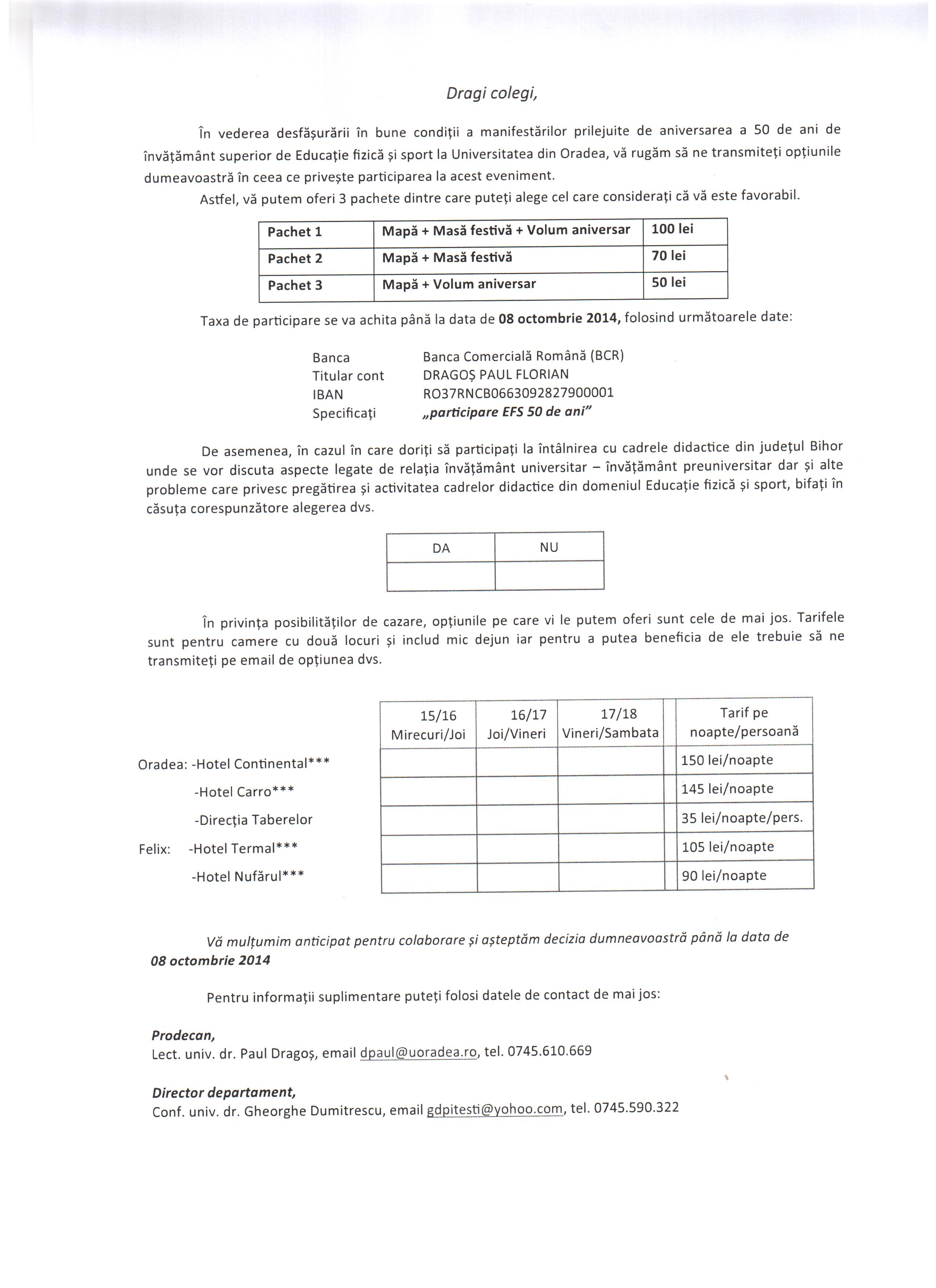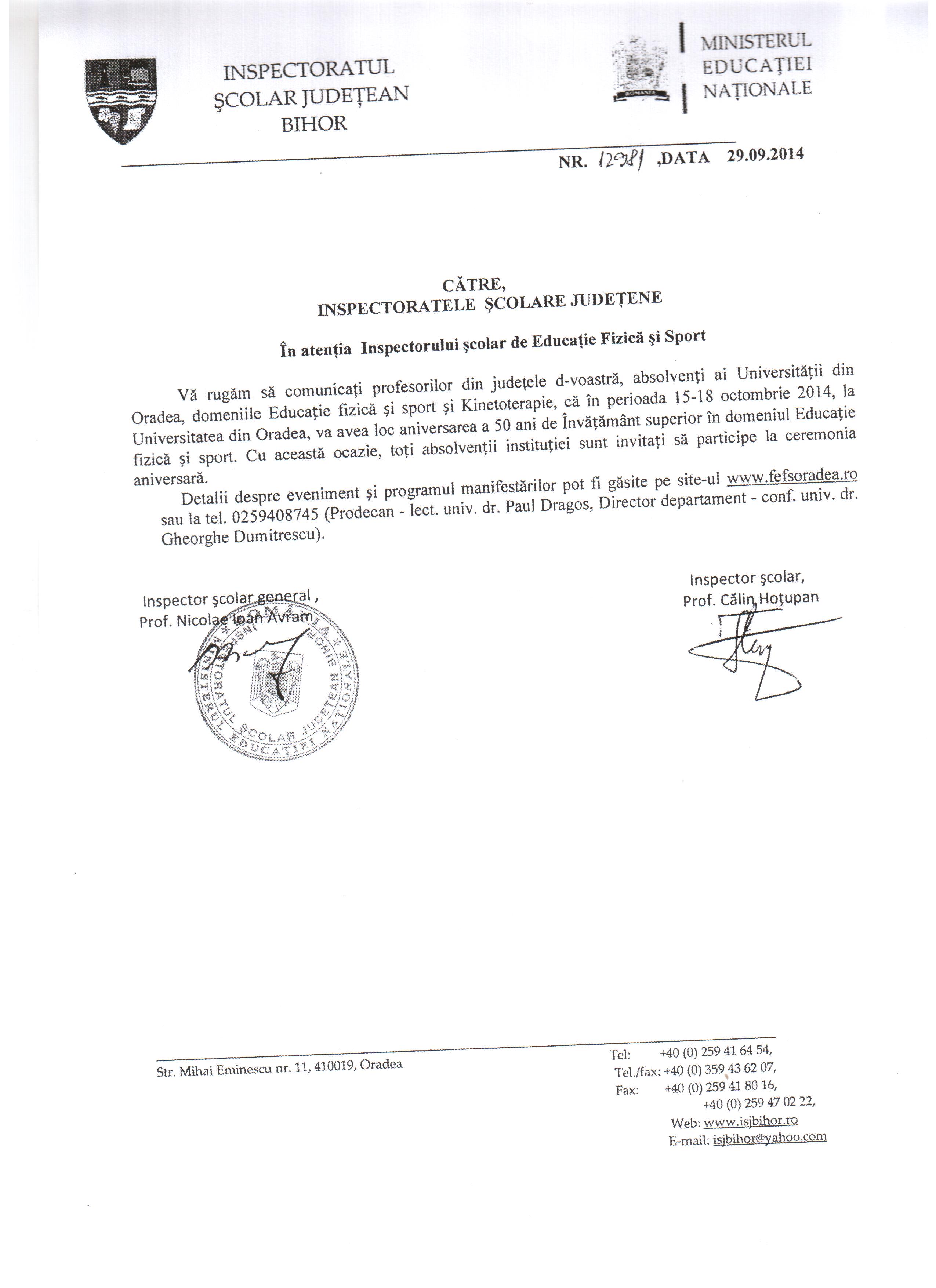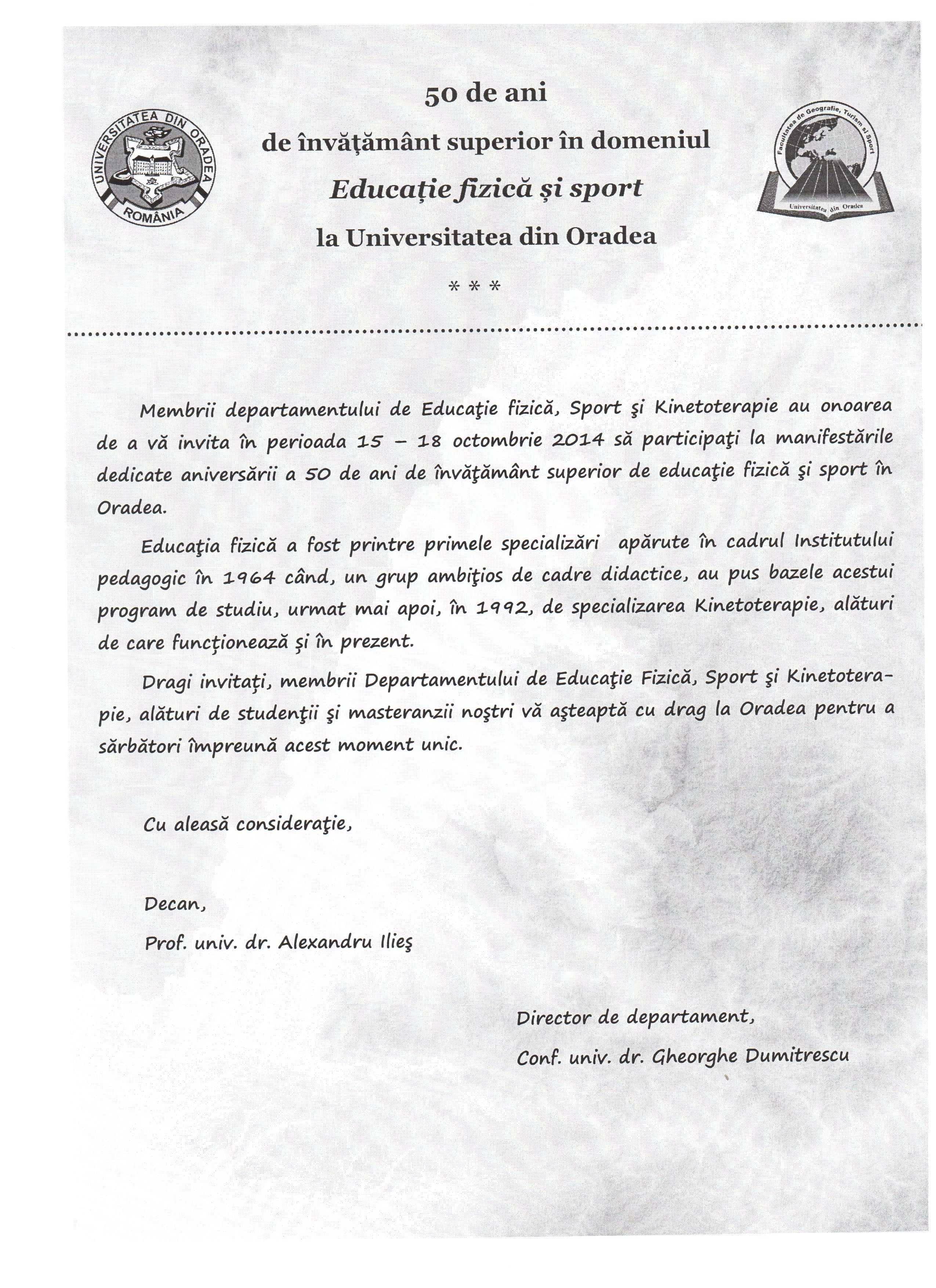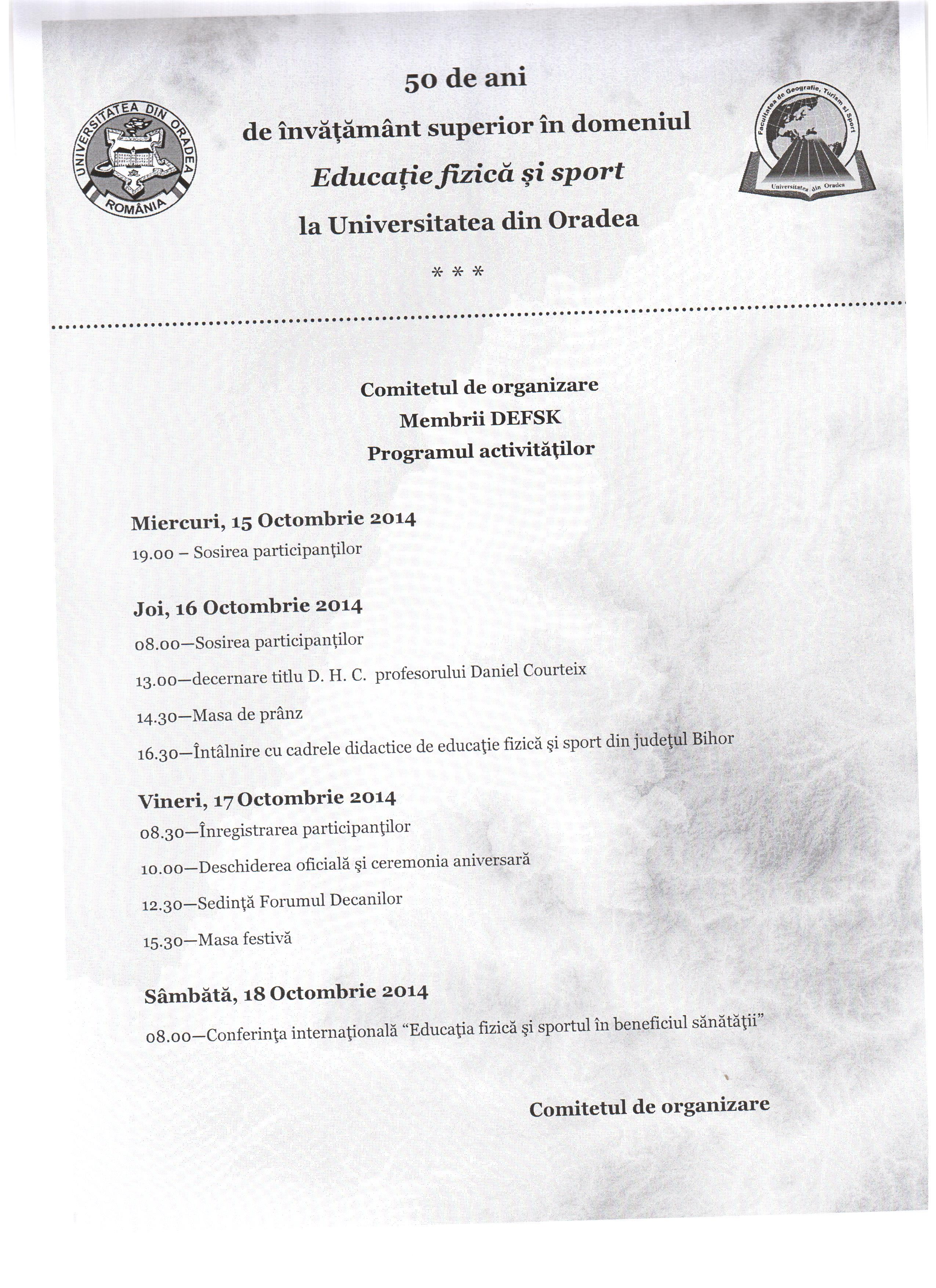 15-18 OCTOMBRIE 2014 UNIVERSITATEA DIN ORADEA ANIVERSEAZĂ 50 DE ANI DE