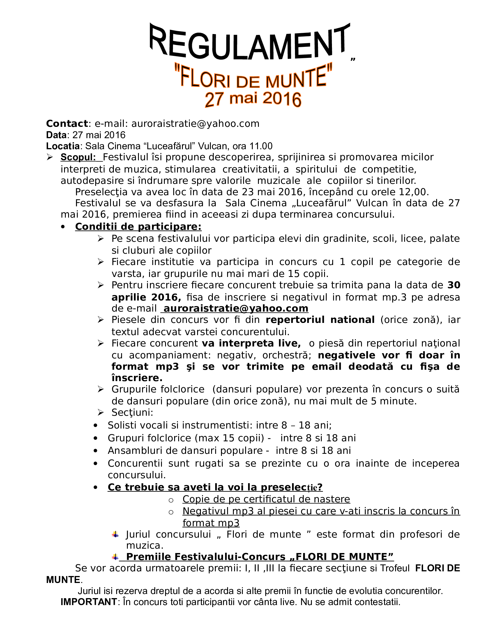 FESTIVAL-CONCURS REGIONAL ”FLORI DE MUNTE”