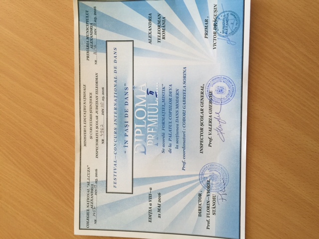 În perioada 20-22 mai 2016, s-a desfăşurat la Alexandria Festivalul Concurs Internaţional "În paşi de dans",organizat de Colegiul Naţional "Al.I.Cuza "Alexandria. Rezultatele obţinute de formaţia MISTIK - cercul de Dans Modern din cadrul Palatului Copiilor Deva au fost :