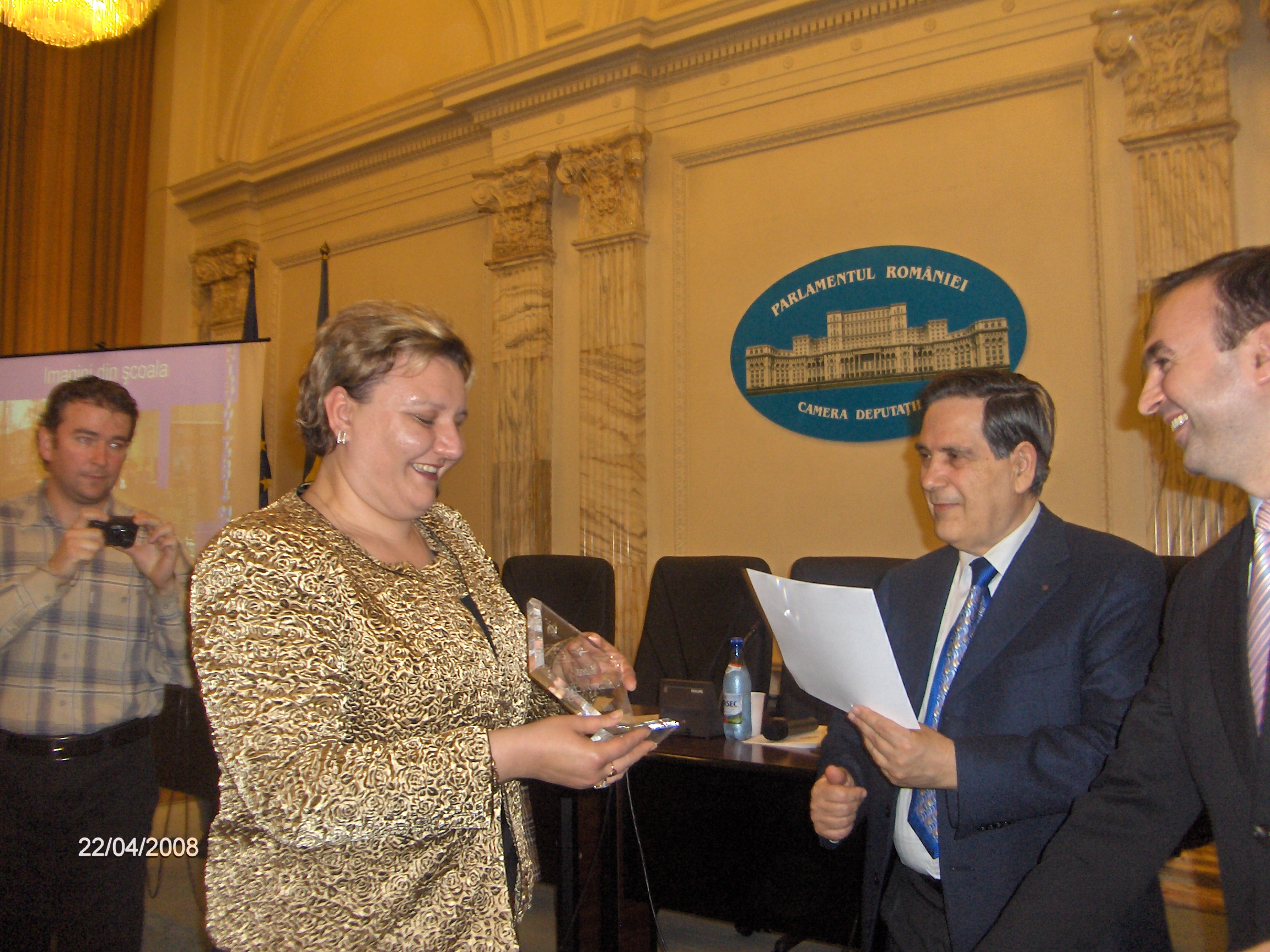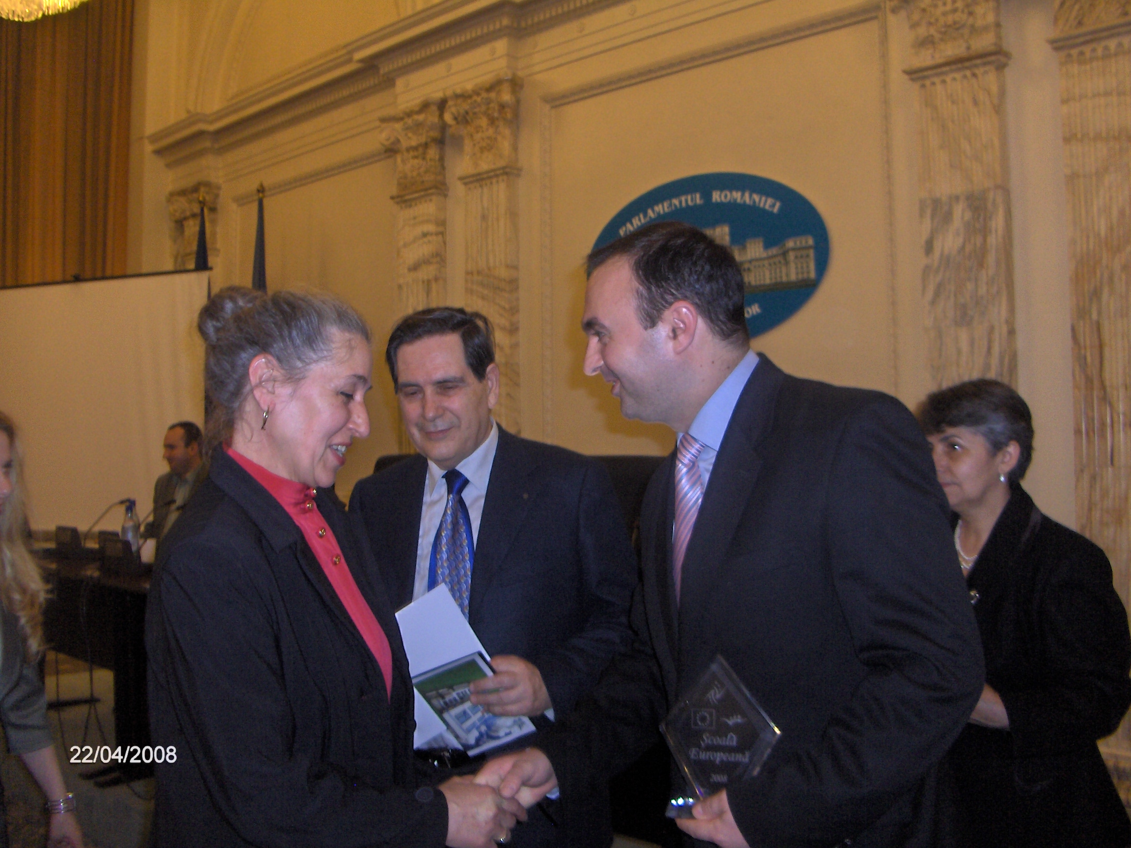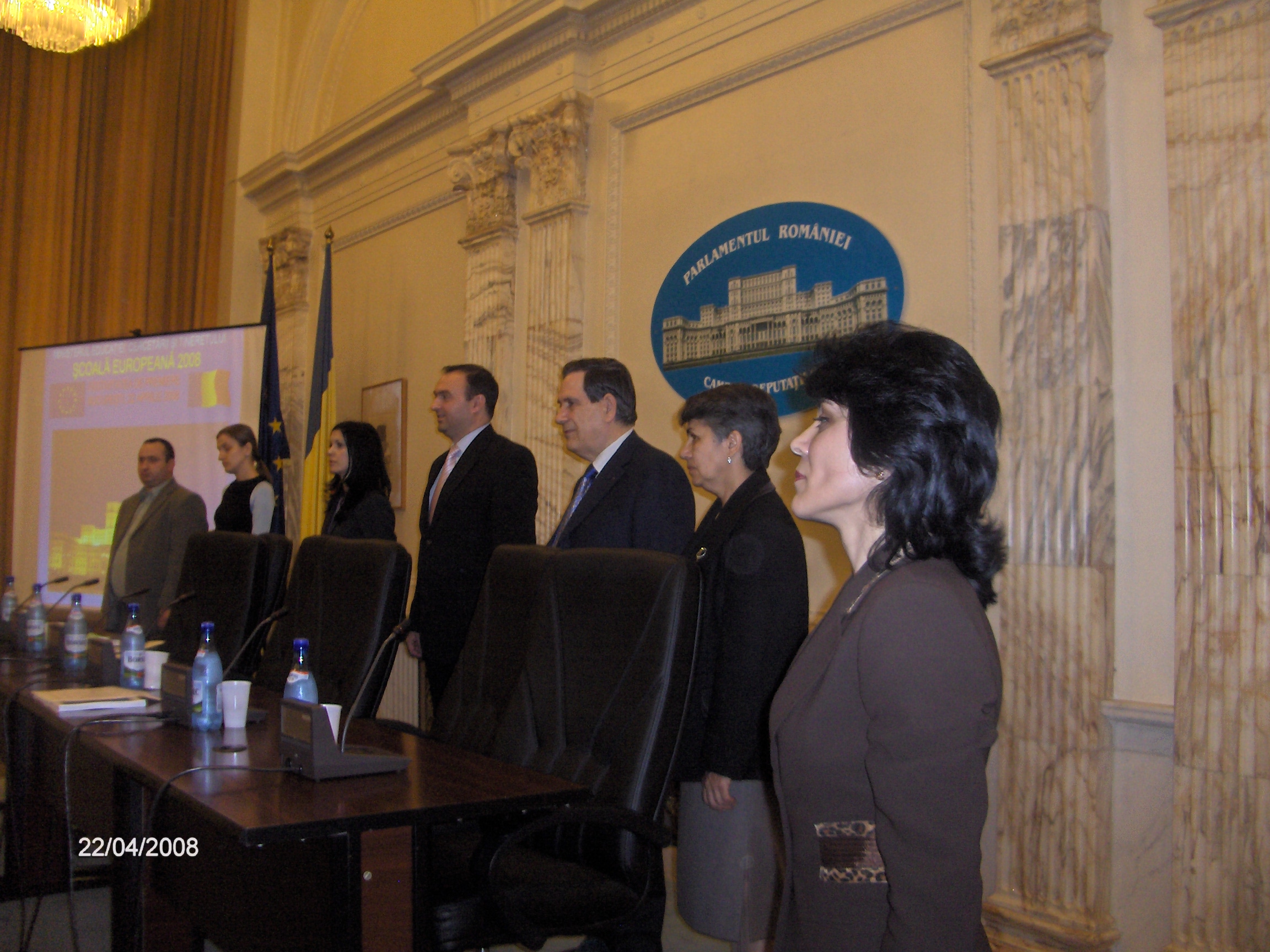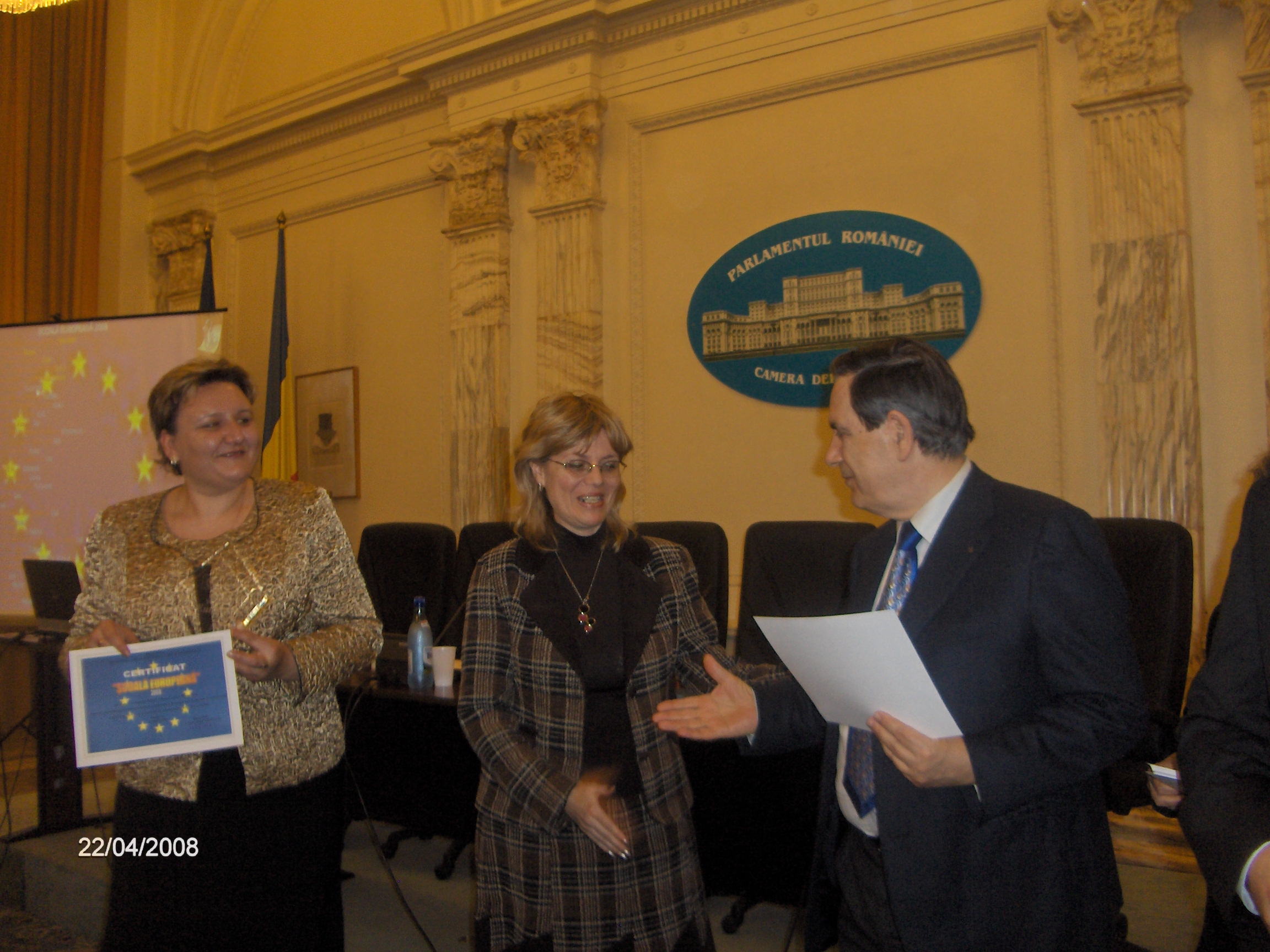 Marti 22.04.2008 la Palatul Parlamentului a avut loc Festivitatea de premiere a unitatilor scolare care au obtinut Certificatul de " Scoala Europeana -2008). Premile au fost decernate de catre Domnul Cristian Adomnitei -Ministrul Educatiei, Cercetarii si Tineretului din Romania. La festivitate a participat si Presedintele AEDE (Association Europeenne des Enseignants) ,Domnul Prof. Silvano Marseglia (Italia).