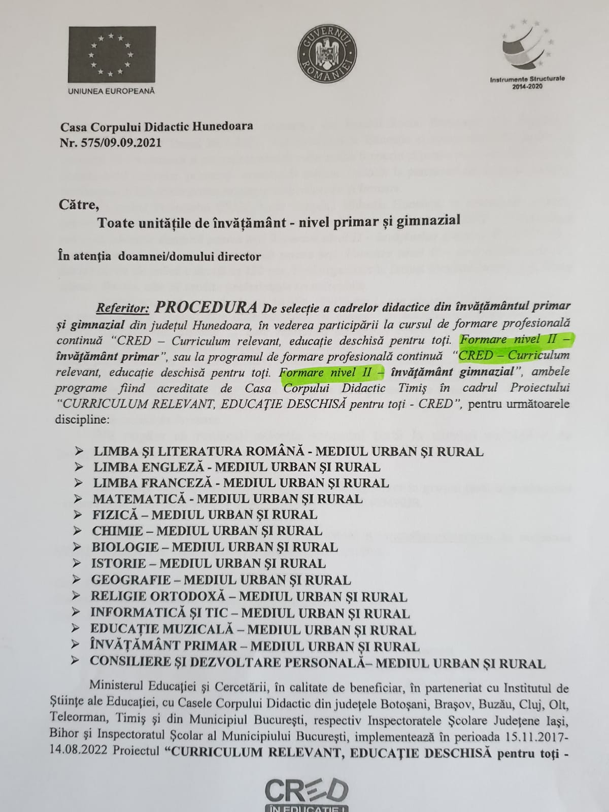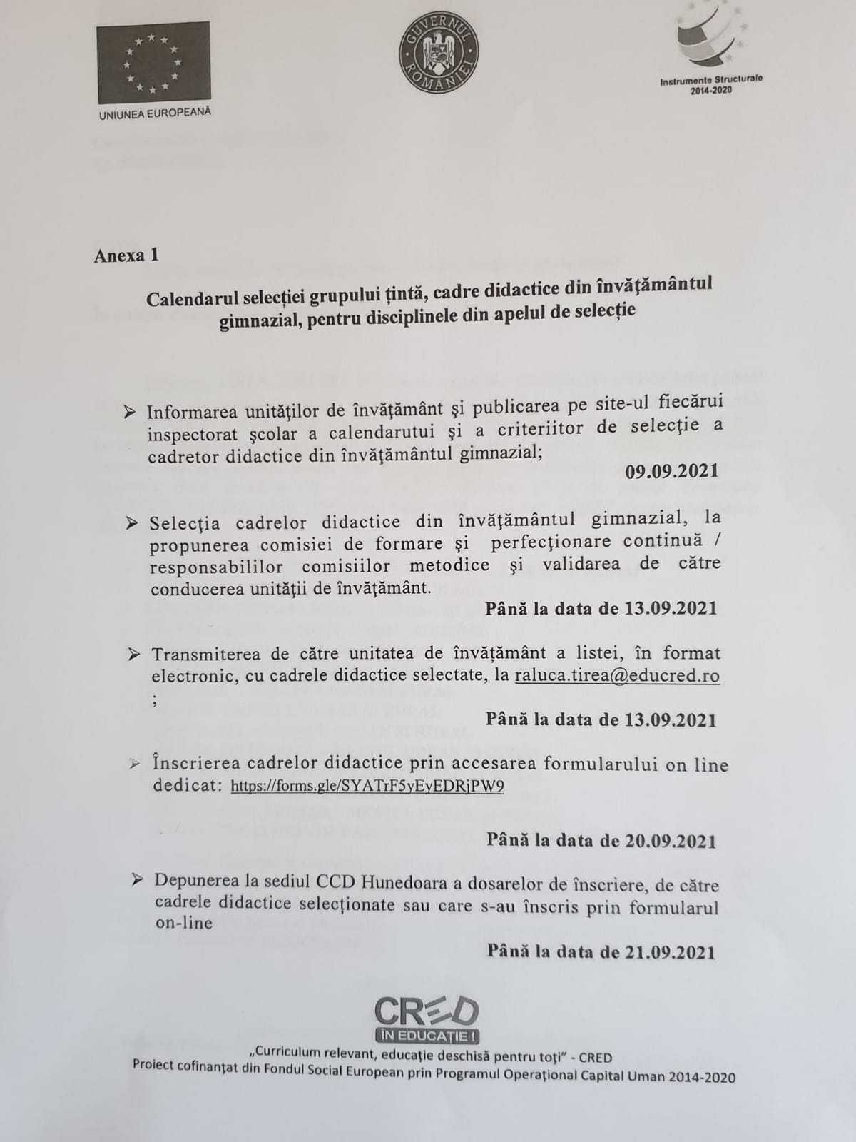 Pentru întrebări suplimentare, vă rog să vă adresați Casei Corpului Didactic Hunedoara https://www.ccdhunedoara.ro/