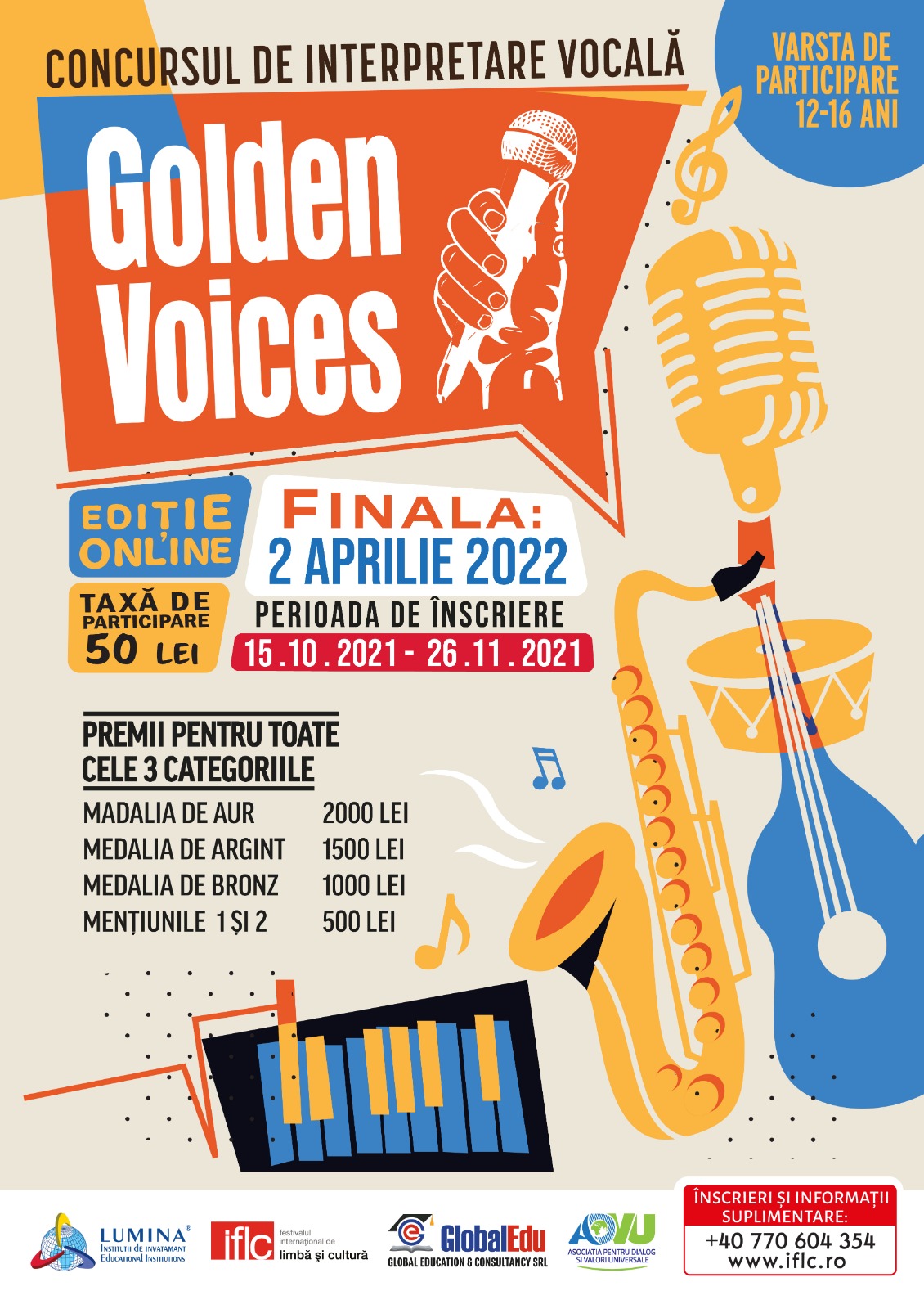 CEL - Centrul de Educație Lumina în colaborare cu organizatorii IFLC (International Festival of Language and Culture) organizează concursul de interpretare vocală GOLDEN VOICES