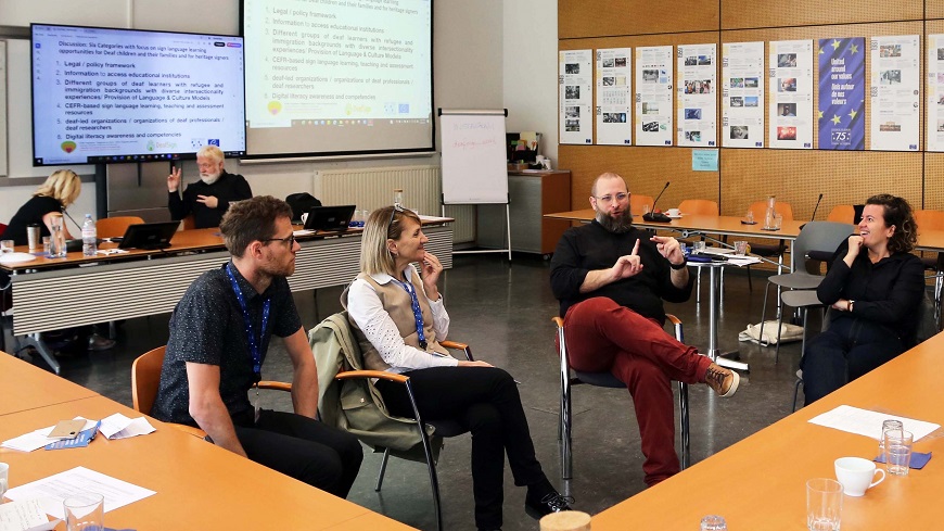 Reuniunea a oferit un cadru valoros pentru schimbul de idei, bune practici și propuneri concrete privind accesul persoanelor cu deficiențe de auz care provin din categoria refugiați și imigranți, copiii cu deficiențe de auz și familiile acestora, precum și persoanele care utilizează limbajul semnelor moștenit, la oportunități de învățare a limbajului semnelor în Europa.