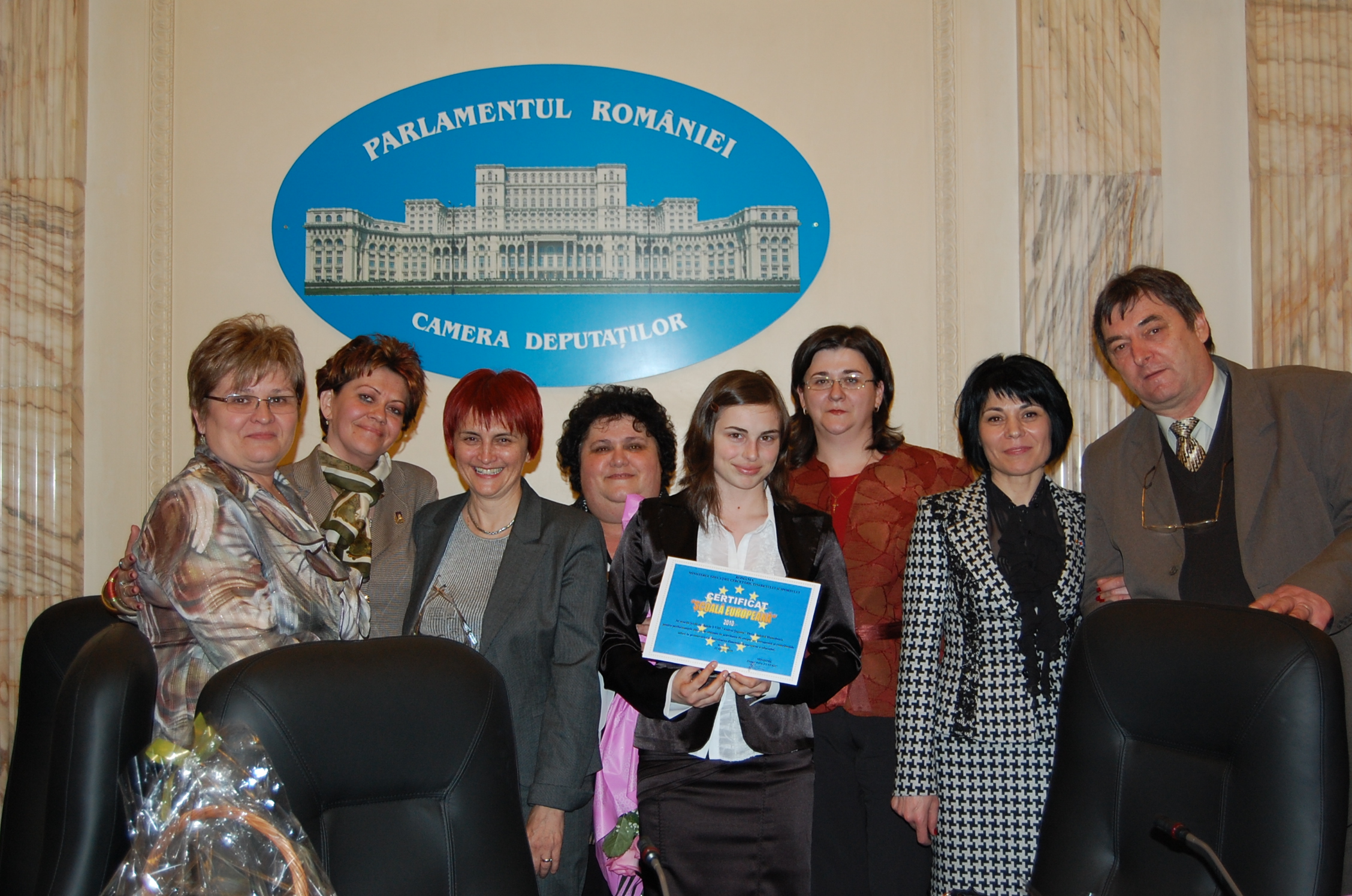 Festivitatea de decernare a CERTIFICATULUI de SCOALA EUROPEANA - 2010 - s-a desfasurat la PALATUL PARLAMENTULUI, JOI - 22 APRILIE 2010, in prezenta D-lui MINISTRU DANIEL PETRU FUNERIU.