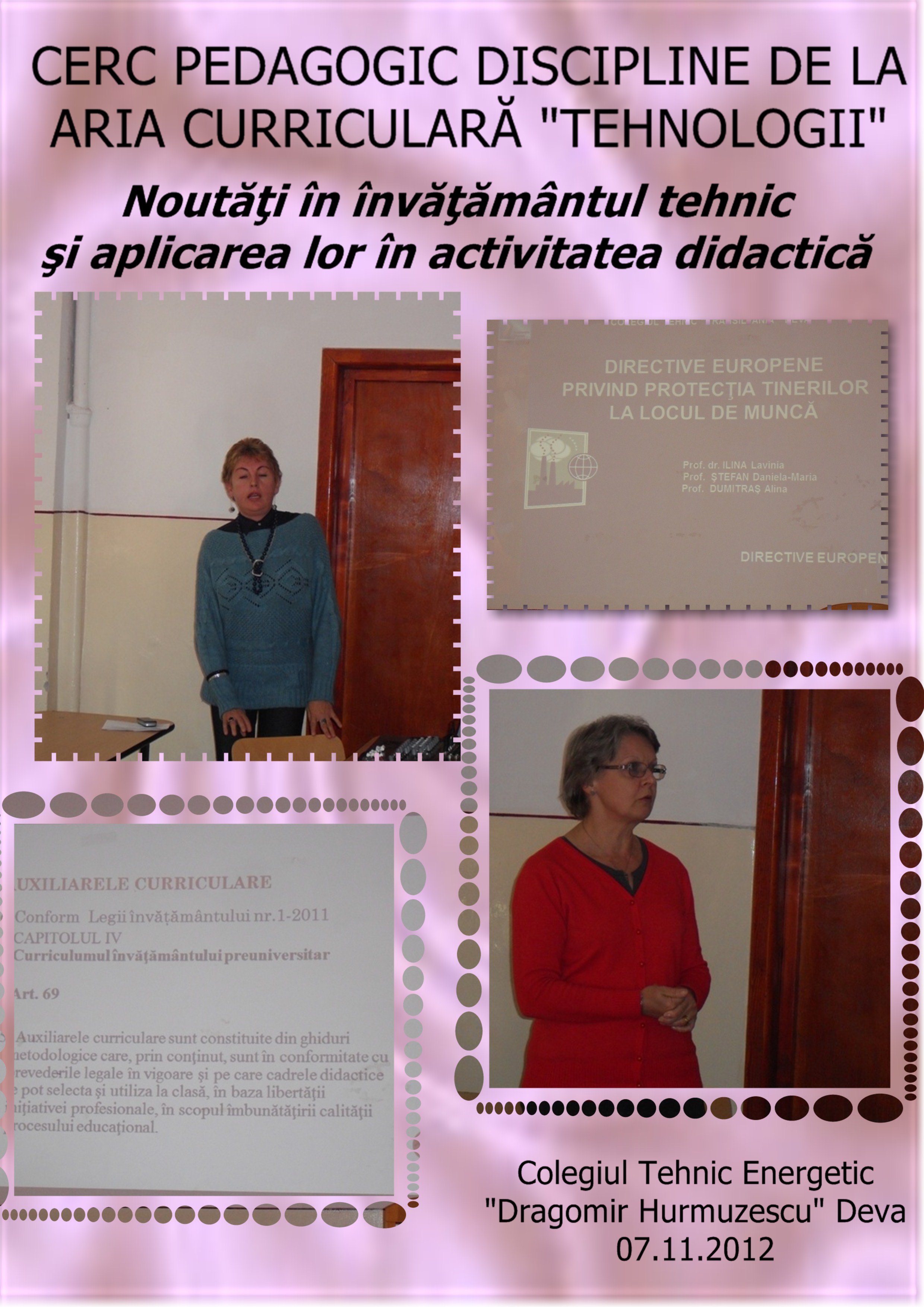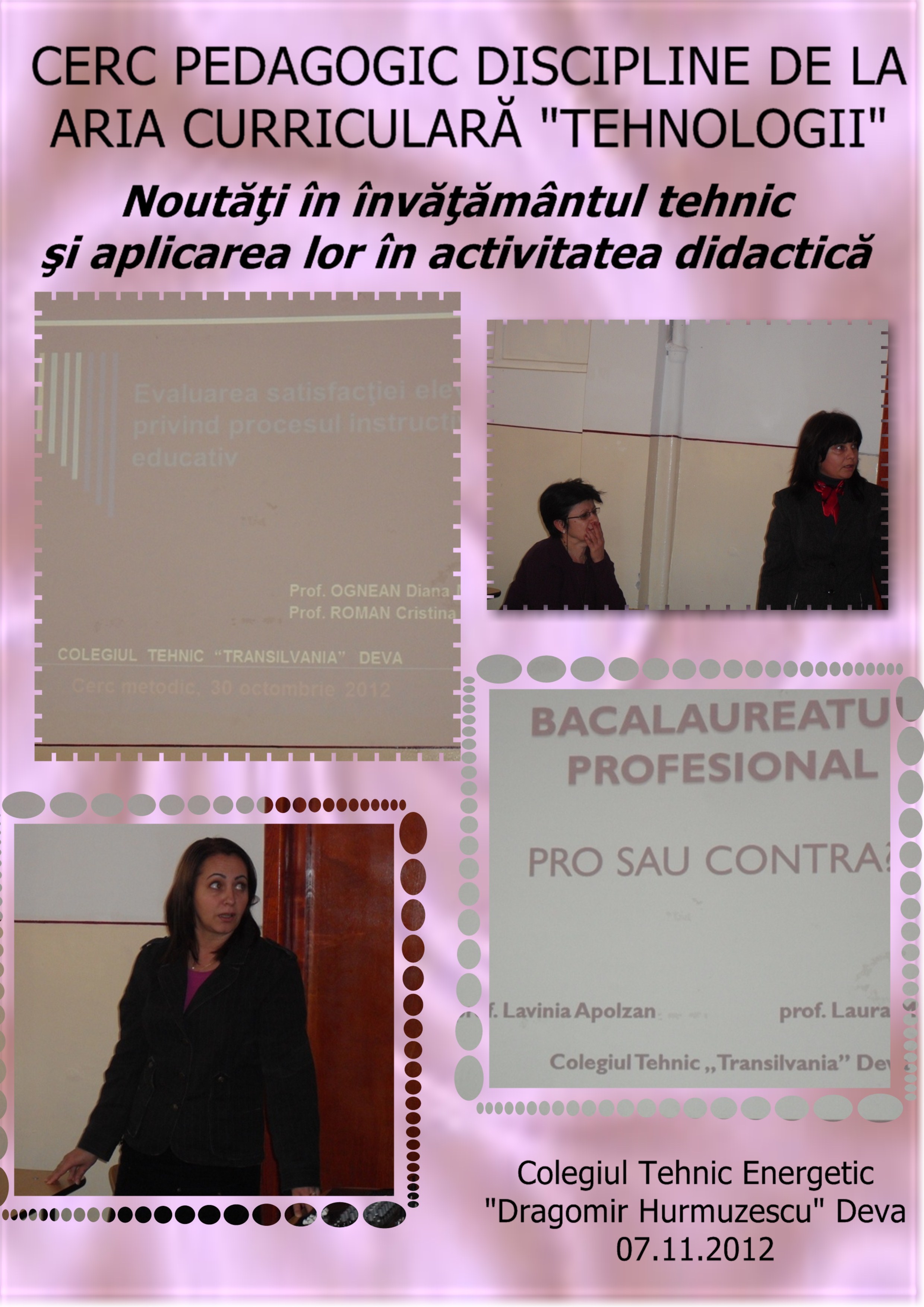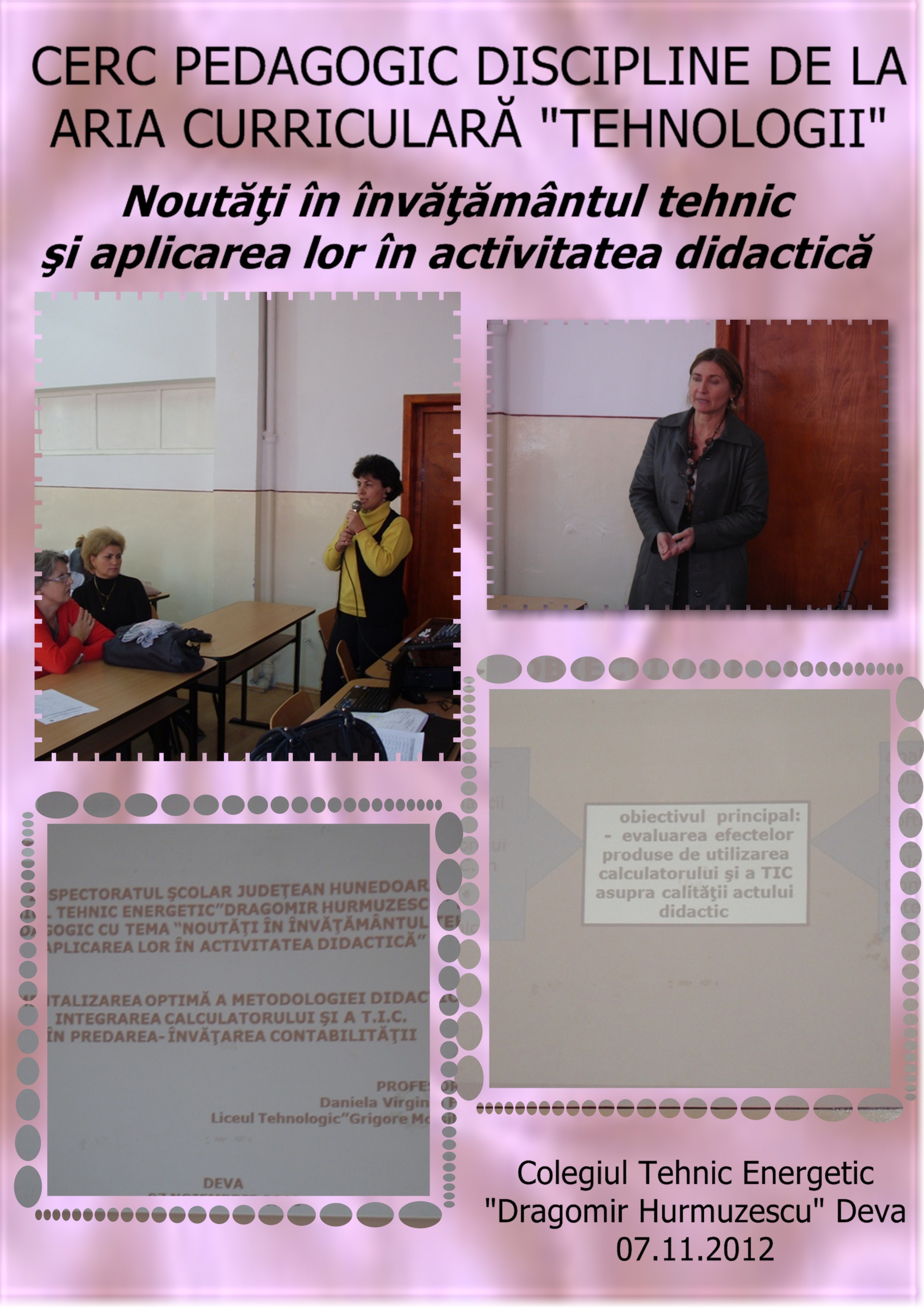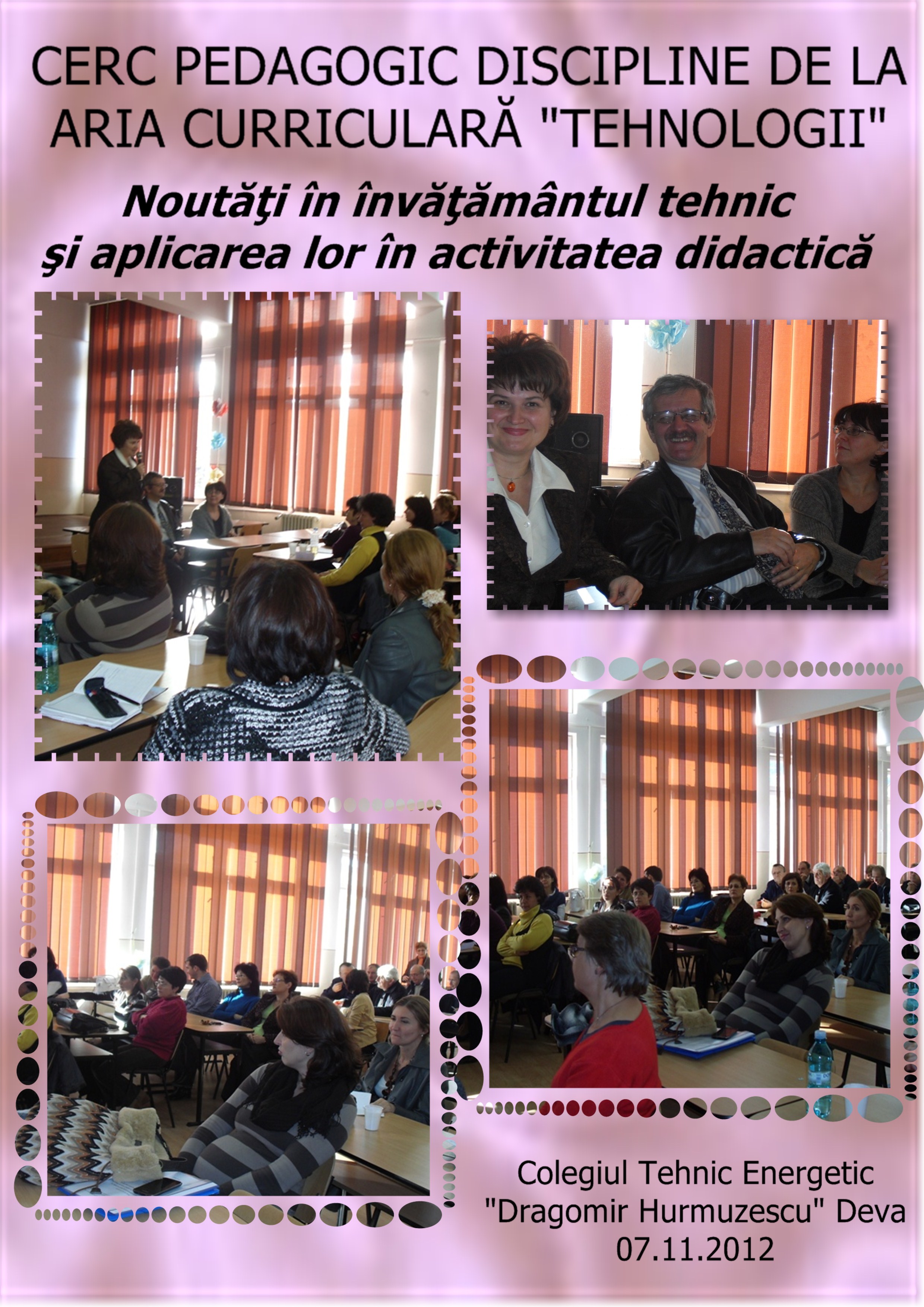 La Colegiul Tehnic Energetic „Dragomir Hurmuzescu”Deva s-a desfăşurat la 7 noiembrie 2012 cercul pedagogic cu tema „Noutăţi în învăţământul tehnic şi aplicarea lor în activitatea didactică”.